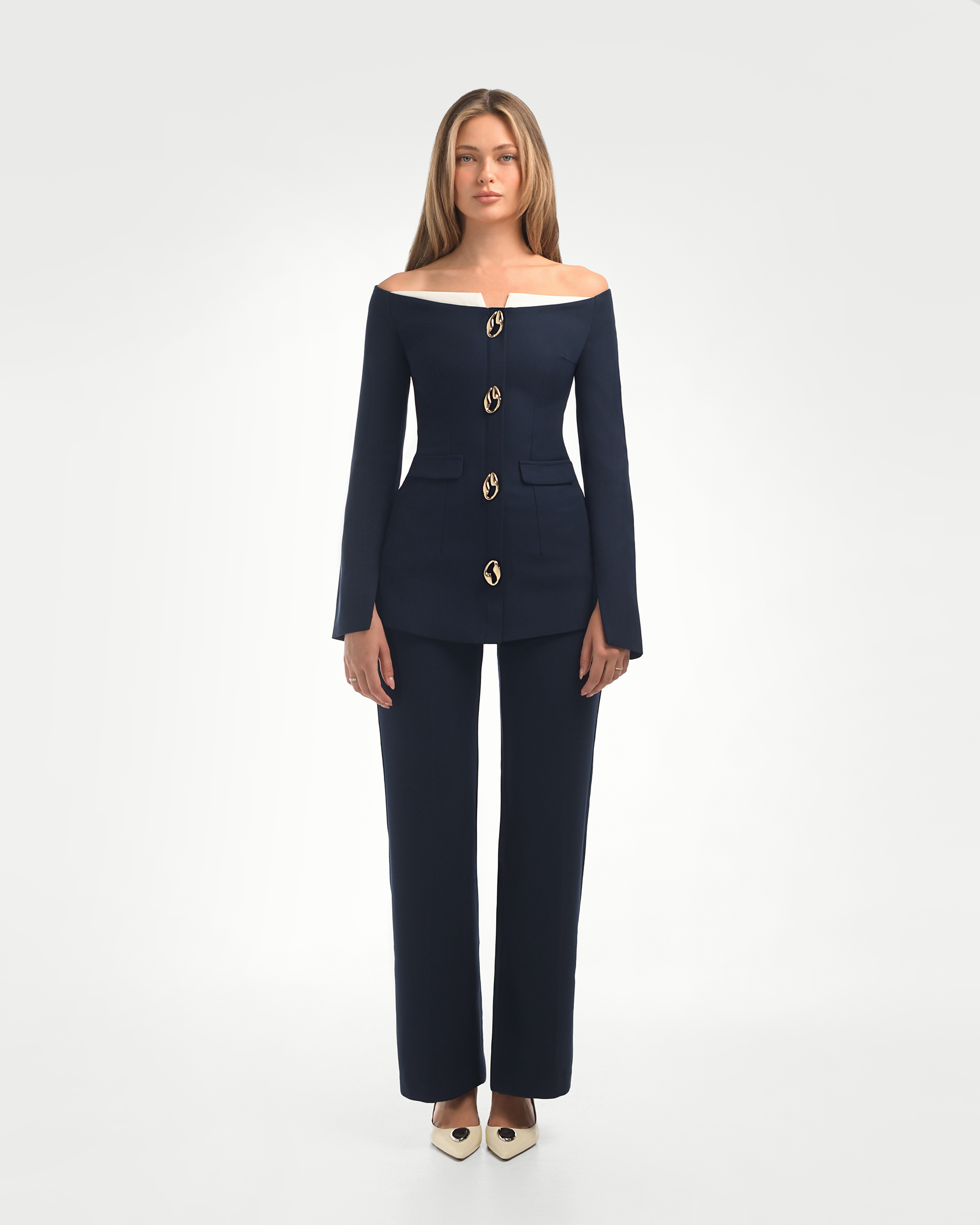 Versatile design suitable for workwear, casual outings, or evening events. Style it with our matching Luna's Sculpted Off-Shoulder Blazer for a polished ensemble.